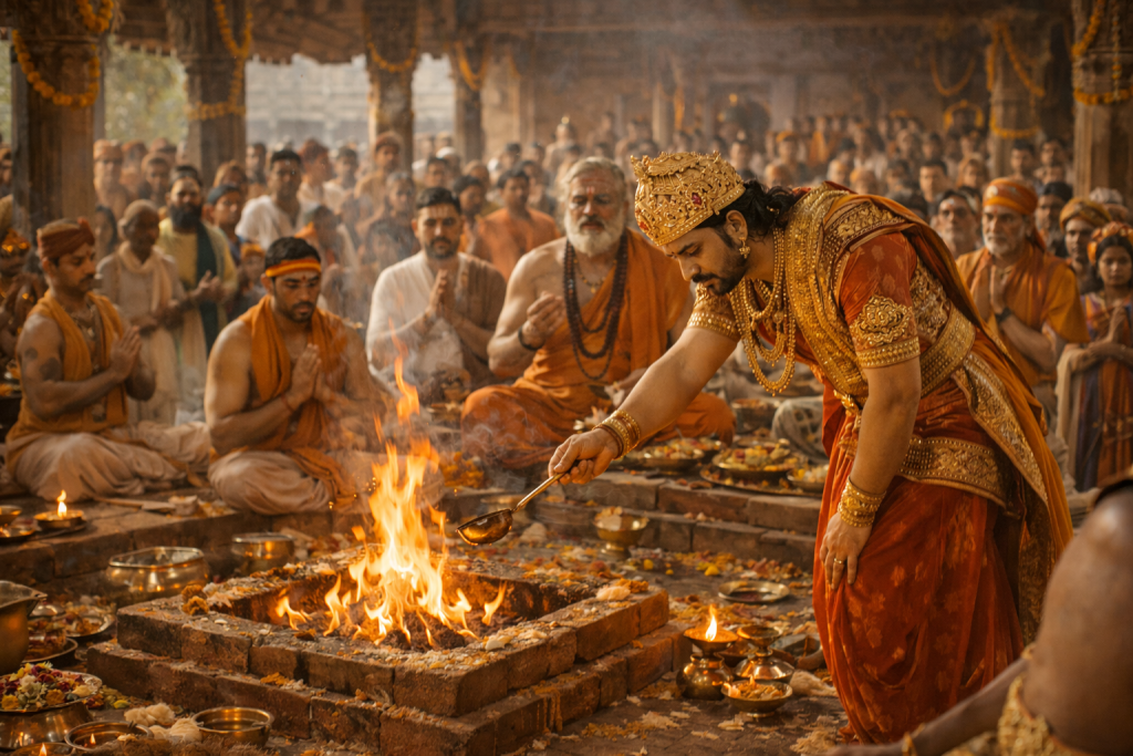 Rajsuya Maha Yagna strengthens Rashtra Dharma by promoting rightThe Rajsuya Maha Yagna fosters unity, strengthens national consciousness, and channels collective spiritual energy for societal harmony and welfare.eous governance, societal harmony, and collective spiritual upliftment through sacred rituals.