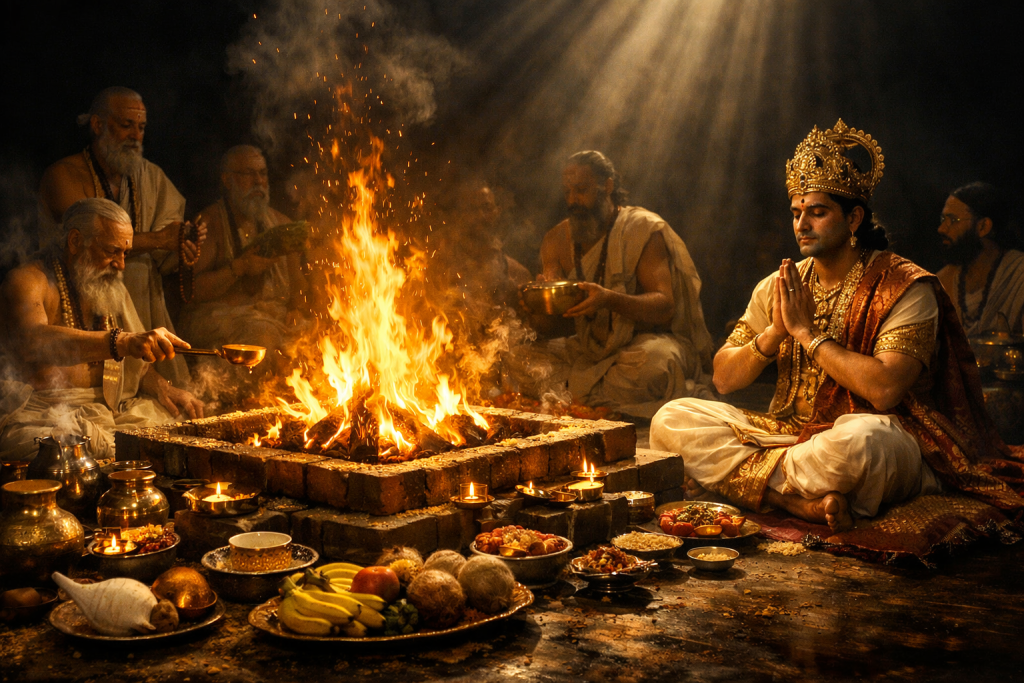 The Rajsuya Maha Yagna signifies divine kingship, dharmic authority, and spiritual alignment between human leadership and cosmic order.